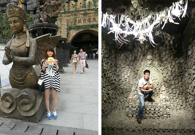 看完輕松詼諧的招婿表演,我們緊接著“馬不停地”的去失落古城去體味“驚悚刺激”的鬼屋驚魂:游離飄蕩的“鬼魅”,詐躺還起的“白衣”,哀怨幽幽的“鬼哭狼嚎”,再加上同行伙伴的捉弄玩笑,絕對是刺激驚悚。其實(shí)在宋城里面有兩處鬼屋,處在失落古城,第二處是在怪街那里,好像叫“聊齋驚魂”,雖然沒有古城那邊的人氣,卻也正是因?yàn)檫@樣,才更顯驚心動魄。