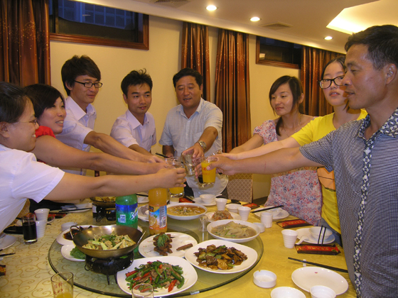歡樂的時光總是走的特別快,不知不覺中已是夕陽西下了,戀戀不舍的我們離開了充滿無限魅力的碧海金沙,前往下一個目的地——洪廟大酒店。當我們抵達酒店的時候,公司已經(jīng)為我們準備好了滿滿幾桌的美酒佳肴。疲憊不堪的我們難以抵制美食的誘惑,很快就狼吞虎咽的吃起來了。美酒、佳肴、夜光杯,還有什么能比此時的我們更幸福呢?
